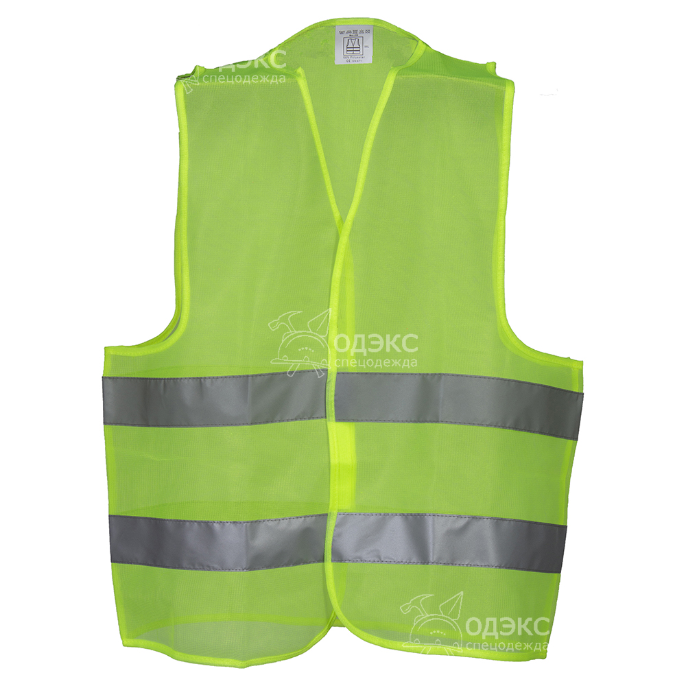 Жилет сигнальный с застежкой на липучках с СОП 50мм - на жилет нанесены две горизонтальные светоотражающие полосы.