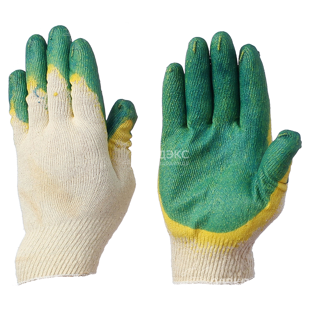 Перчатки трикотажные с 2-м латексом. Перчатки х/б с добавлением полиэфирной нити и облиты двойным слоем латекса. Второй слой значительно заходит на тыльную сторону. Такой способ облива,значительно увеличивает срок использования перчатки и применяется для работы с жидкостями, нагретыми до высоких температур,нефтепродуктами, продуктами химической и других областей промышленности.