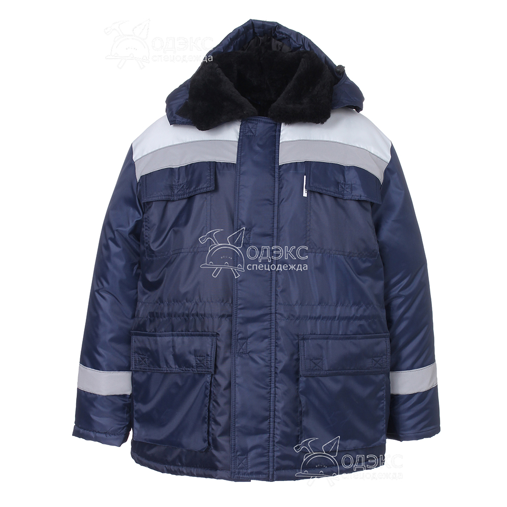 Костюм утепленный Бригадир - Куртка с супатной застежкой на замке, отстегивающимся регулируемым капюшоном, трикотажными напульсниками и меховым воротником. Нагрудные накладные карманы с клапанами на "липах". Полукомбинезон с регулируемыми бретелями с фастексами и элестичной резинкой. СОП 50 мм Цвет: темно-синий + светло-серый. Ткань: Oxford-210D, 100% п/э. Утеплитель: синтепон в куртке 360 г/м2, в полукомбинезоне - 240 г/м2. Подкладка: 100% п\э.Рост: 170-176, 182-188.